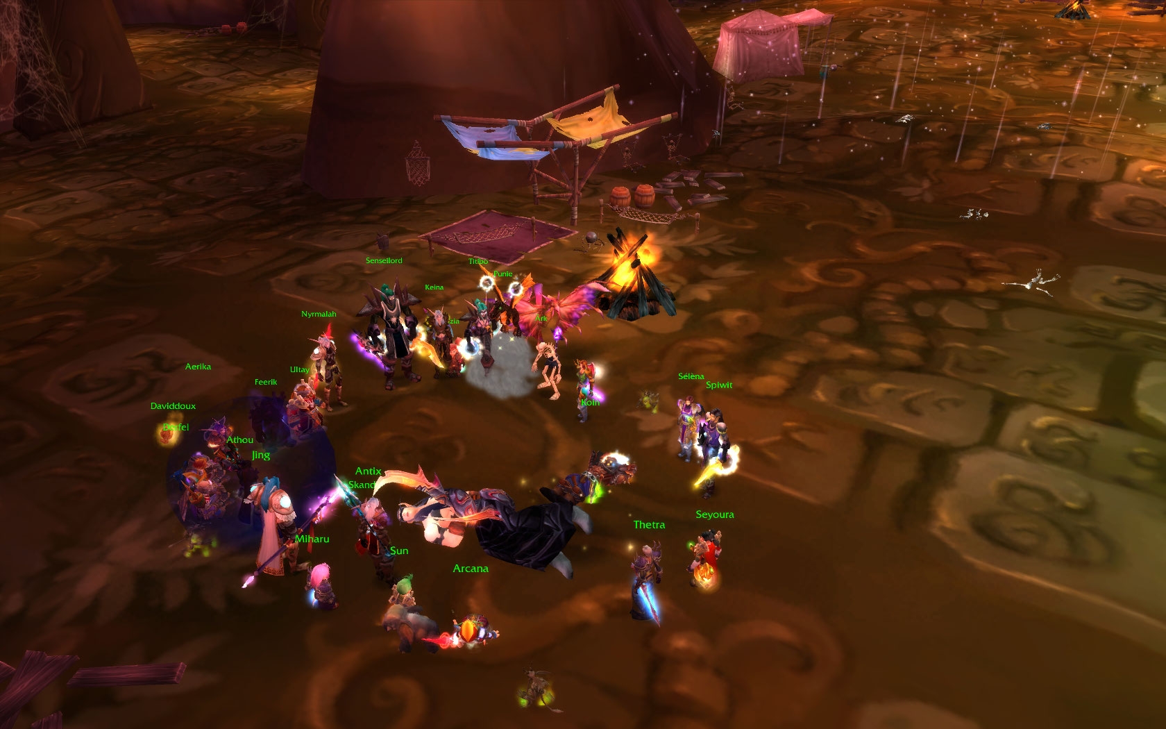 Bon, voilà, c'est tout pour le moment. On travaille sur la suite, ne vous inquiétez pas. On sait que vous êtes nombreux à suivre avec attention l'avancée du serveur Kael'Thas, serveur dont les 2 guildes les plus avancées ont des noms d'animaux dans leur titre de guilde débile, ce qui en dit décidemment long sur la qualité du serveur. A bientôt pour encore plus de loots ! |