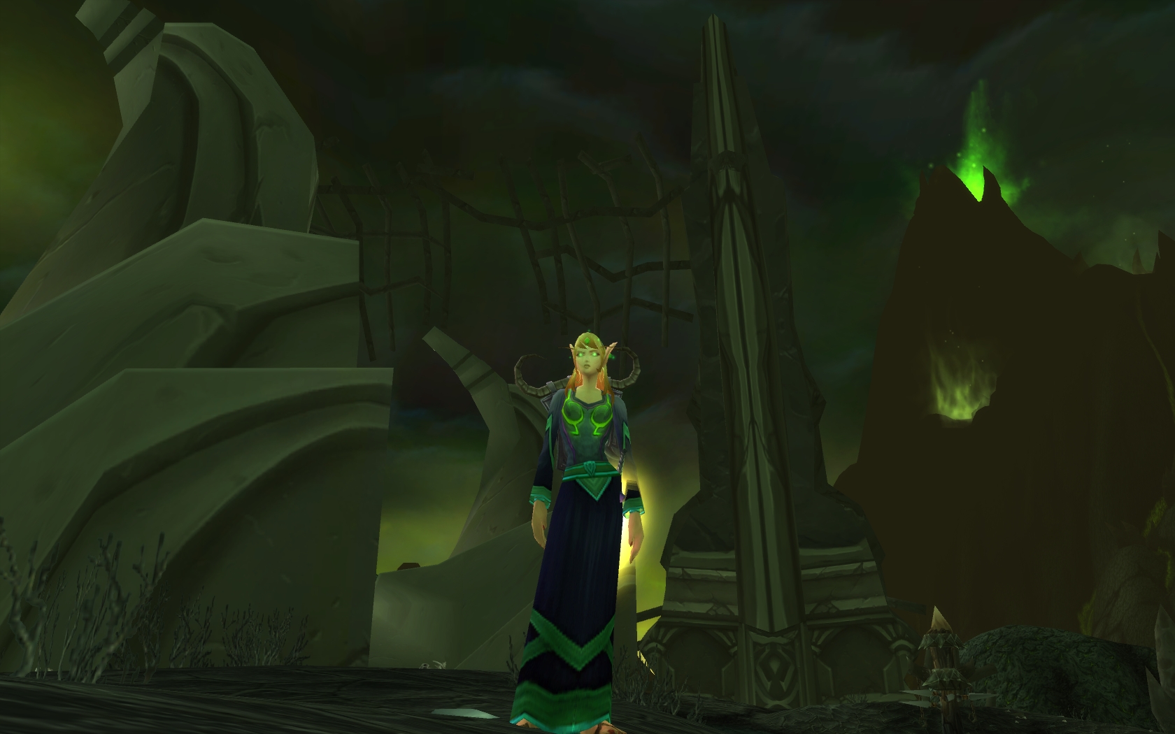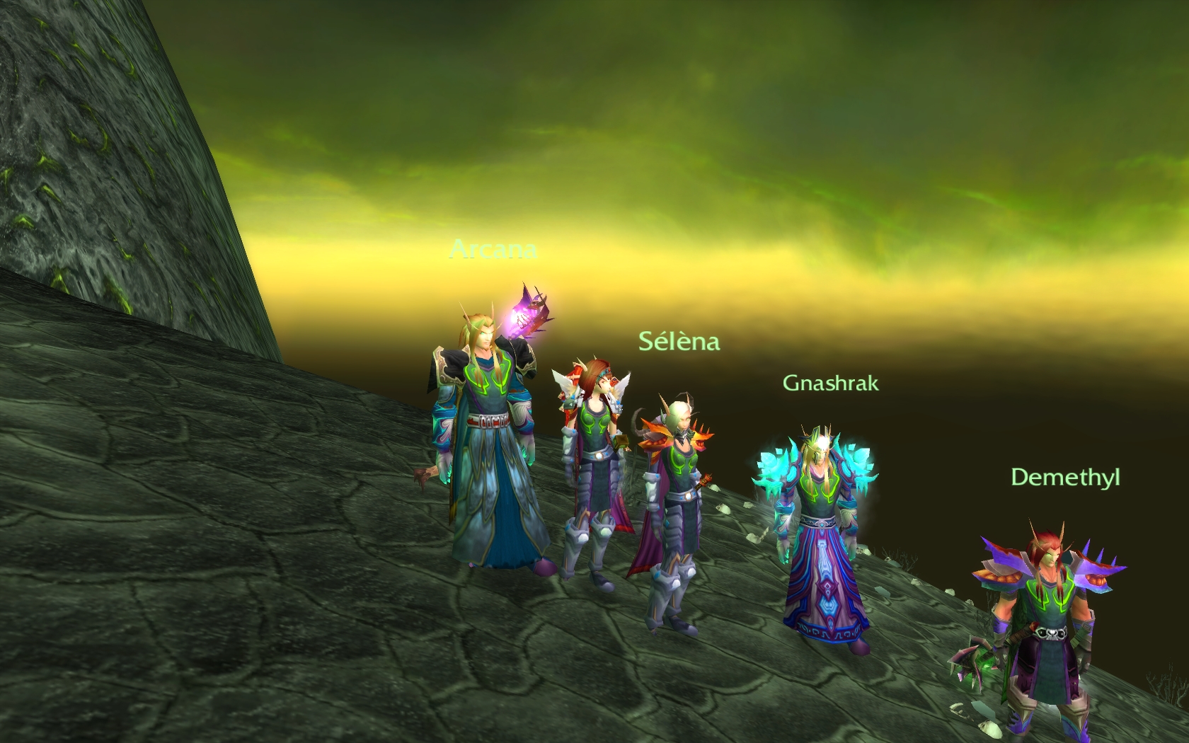 Dans le feu de l'action, j'ai pas pu prendre de vrai joli screenshot, mais en gros, imaginez un druide mi T2/T3 avec un Atiesh dans le dos, et 2 corbeaux au dessus, le tout en format cinémascope, ça fera l'affaire.