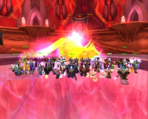 Nous voilà donc embarqué dans un combat original, et qui dit original dit un peu buggé sur les bords, on applaudira par exemple la fois où cette sous-race de torche ailée a repop je sais pas où et nous a fondu la tête sans qu'on puisse rien faire. En dehors de ça c'est un fight sympathique, avec des petits poussins-phoenix qui apparaissent, qu'on a fait tanker avec des druides en ours pour prendre des photos mignonnes qu'on filera à nos copines... NON JE RIGOLE LOL. Un combat très stylé, on sent le temps qu'ils ont passé à faire la skin et les animations, en tout cas nous on l'a senti à travers le temps qu'ils n'ont pas passé à sortir des instances correctement réglée à la sortie de l'addon tiens. Comme c'était super joli, on a fait exprès (bien sûr) de mourir plein de fois, et ce n'est qu'au soir du 2° jour que le Dieu Phoenix s'est éteint. Enfin, éteint pour de vrai, parce qu'un Phoenix... enfin il... enfin vous voyez... bon il revit quand il meurt quoi. Donc là je parle de la vraie mort quand il est mort et qu'il reste mort par terre. Bon perso je l'utiliserai pas comme tapis de douche parce qu'on sait jamais, donc on prend nos loots et on le laisse sur place, après il peut bien aller ressusciter pour aller voir Volcano dans un cinéma érotique Phoenix, on s'en bat les bottes T1 avec un Staff of Dominance (celui qui a hurlé "KAMOULOX" au fond, chut, y'a des gens qui travaillent ici).