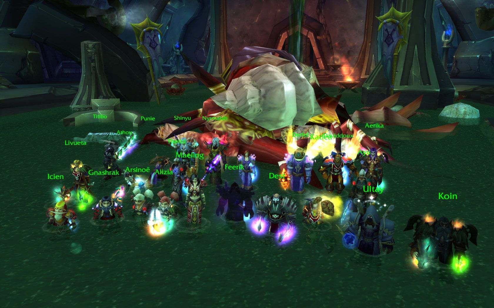 Il n'y a rien de plus puissant que la rage insoumise de 25 aventuriers restés coincés sur un machin en robe avec des grandes oreilles et des trucs verts sur les épaules. Une fois libérée, cette énergie ravageuse qu'on pourrait matérialiser sous la forme d'un étudiant hétérosexuel laché dans une école de coiffure, va sauter dans tous les sens pour défoncer tout ce qui bouge. C'est bien entendu le cas de cette guilde, qui après avoir brillament éliminé un boss extrêmement technique et difficile (Rage Froidhiver, difficile de pas détruire violemment quelque chose avec ce nom en VF), s'est dirigée vers le Black Temple, qui a été l'espace de 2 soirs le Blague Temple.