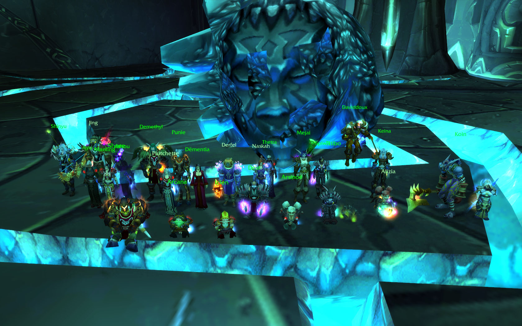 Et pour finir, le mec super vnr. Ca finit en beauté, sur une course DPS, là où cette guilde excelle, surtout dans les derniers pourcents où on réveille systématiquement le voisinage. Quelle meilleure sensation que d'entendre le tank hurler "JE PASSE EN EXECUTE HEALEZ MOI PLUS FORT" quand on vient de claquer son Imposition des mains la seconde d'avant. Un pur Moment Lapin ©. Ainsi la 3° tête est morte en soupirant "de toute façon c'est trop nul de vivre". Ouais, noraj++ mec.