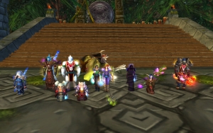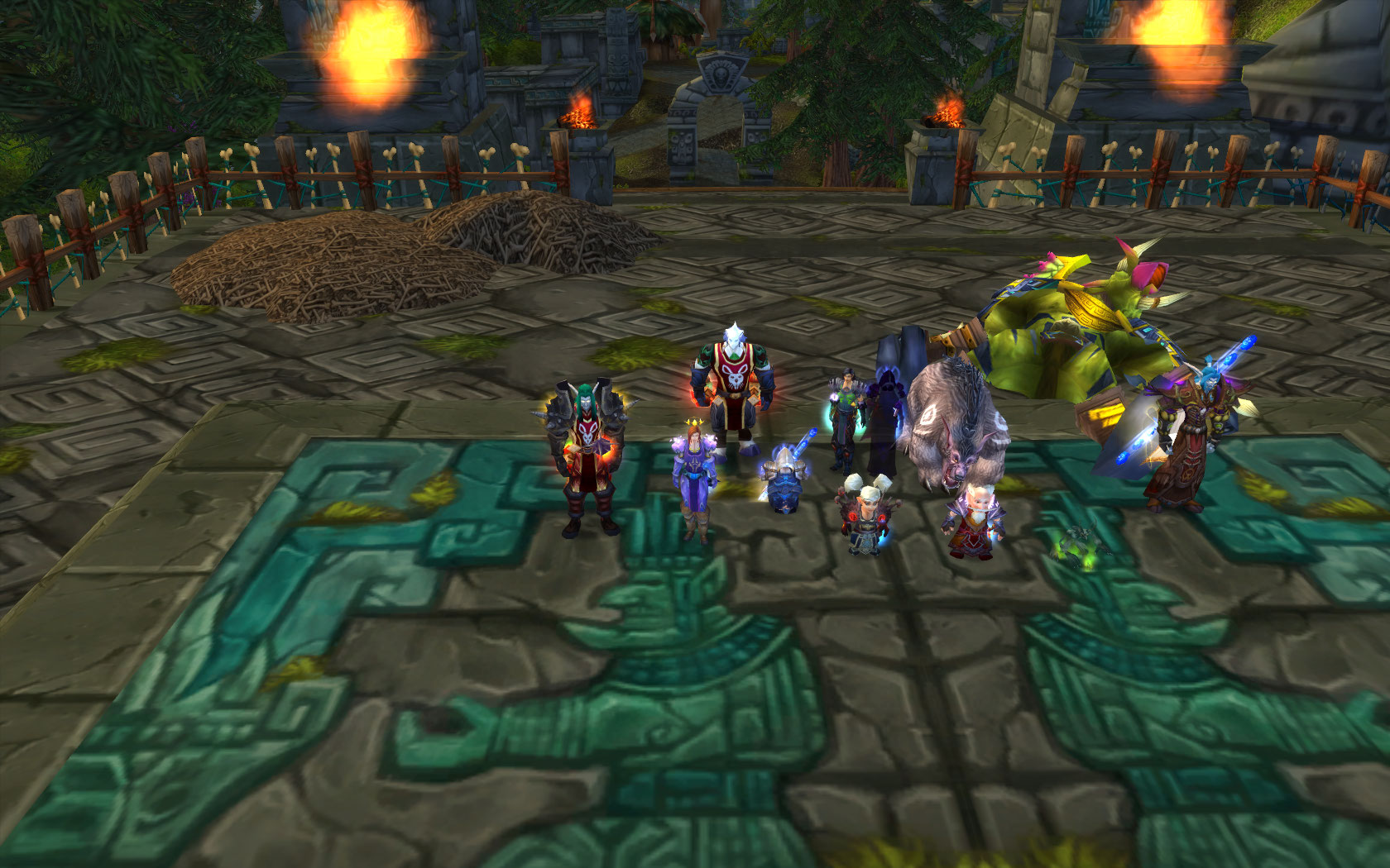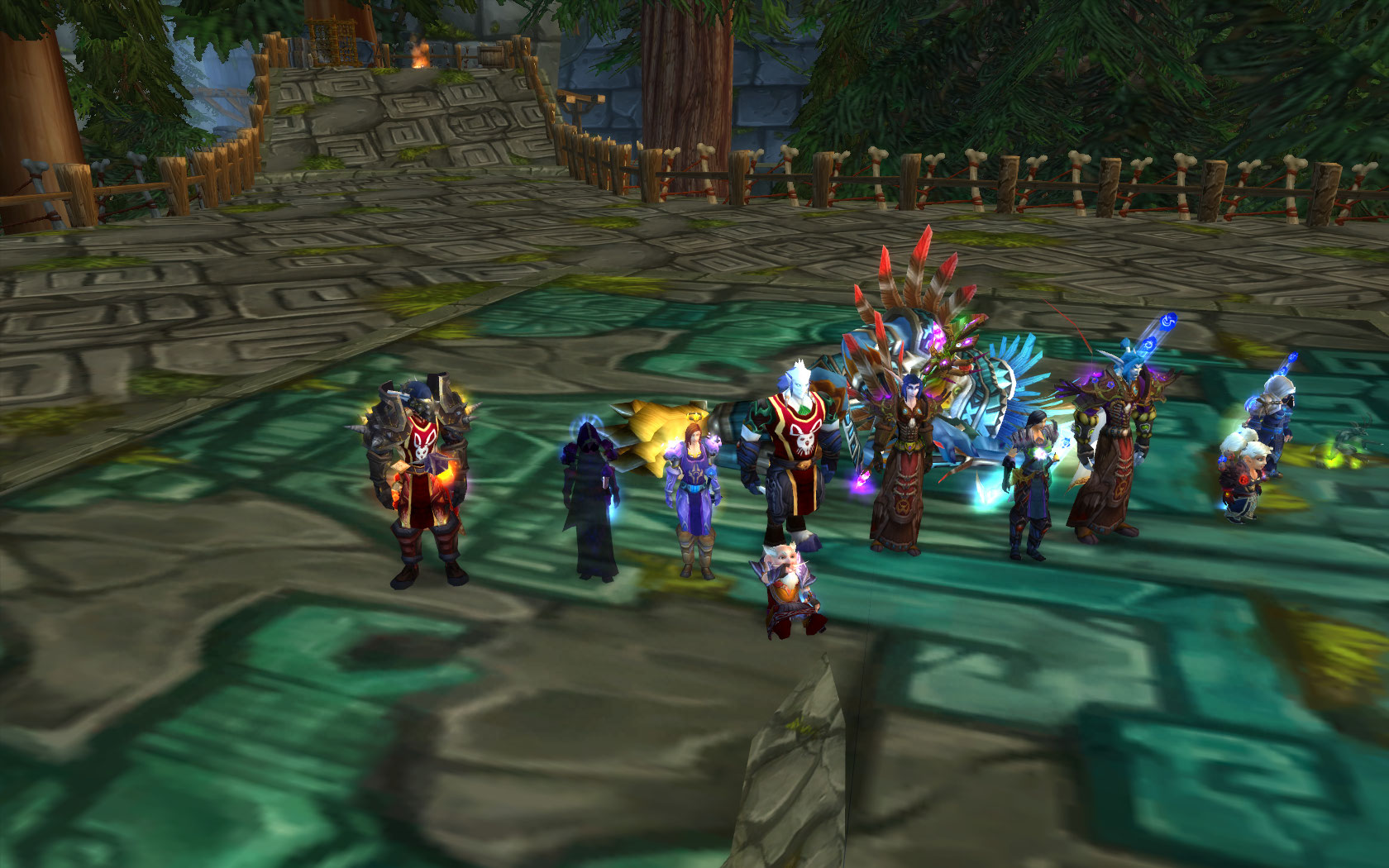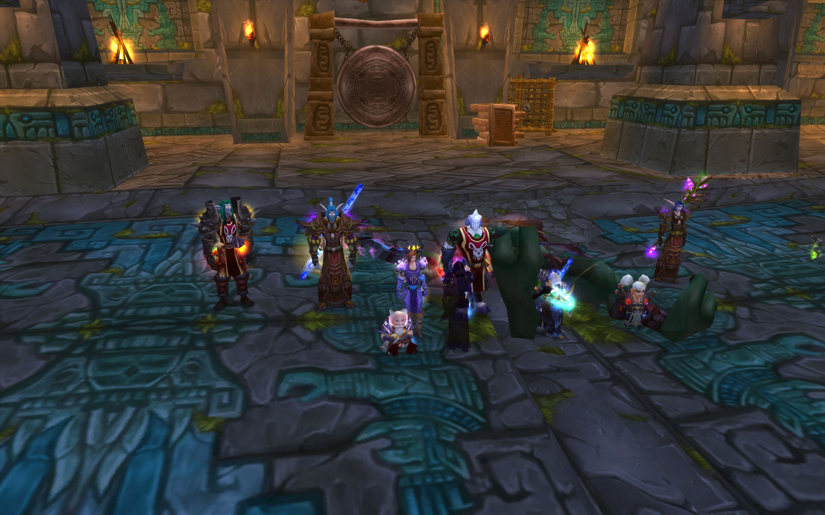 - Ah ouais, quand même. On se paye tout le chemin dans cette région de noobs, et on tombe sur un Grumly géant qui veut nous donner sa bête. Alors on sauve le présent en tuant le gros méchant avec des ailes qui fait du laser avec ses yeux, ensuite on sauve le passé en tuant un Draeneï mutant qui gangre-arrose un arbuste-monde, et maintenant on nous envoie fêter Mardi Gras. Je crois que le pire là dedans, c'est qu'il s'agit encore d'un boss qui va filer une monture à tout le monde sauf nous. Et pourquoi y'a le Reliquaire des Ames ici ?